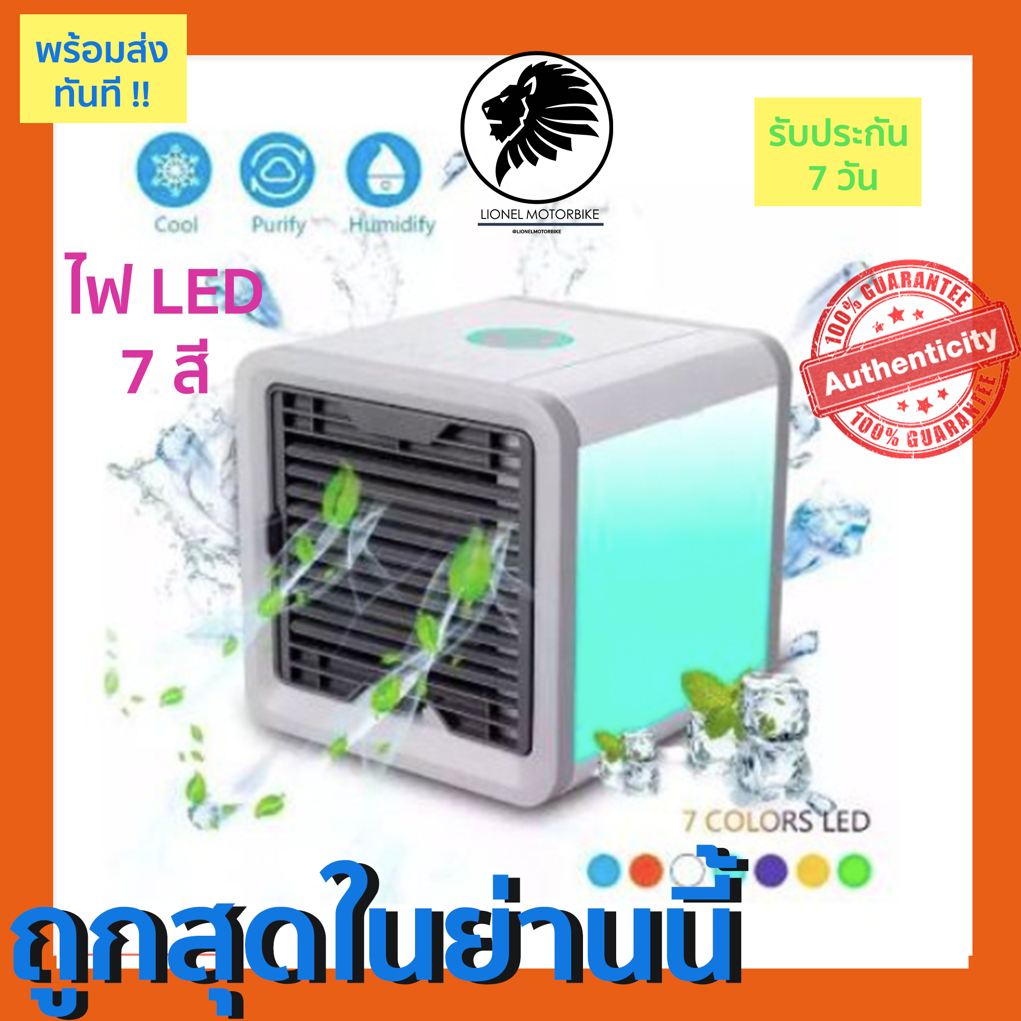 - ปรับความเร็วลมได้ 3ระดับ ไฟ LED เปลี่ยนสีได้ 7สี